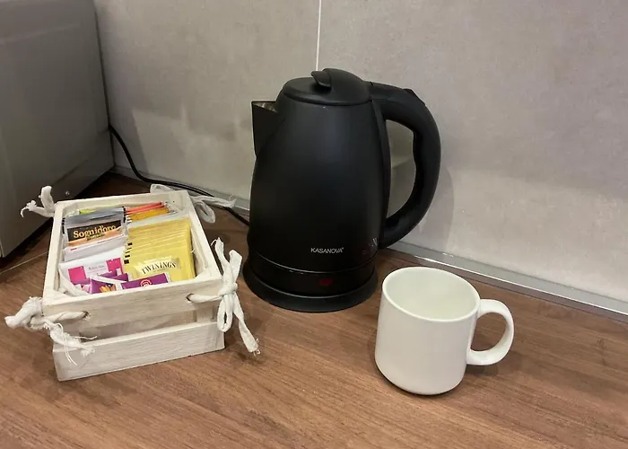 La cucina completamente attrezzata è completa di servizi per la preparazione di tè/caffè, oltre a un microonde, un bollitore elettrico e utensili da cucina, indispensabili per cucinare da soli.
